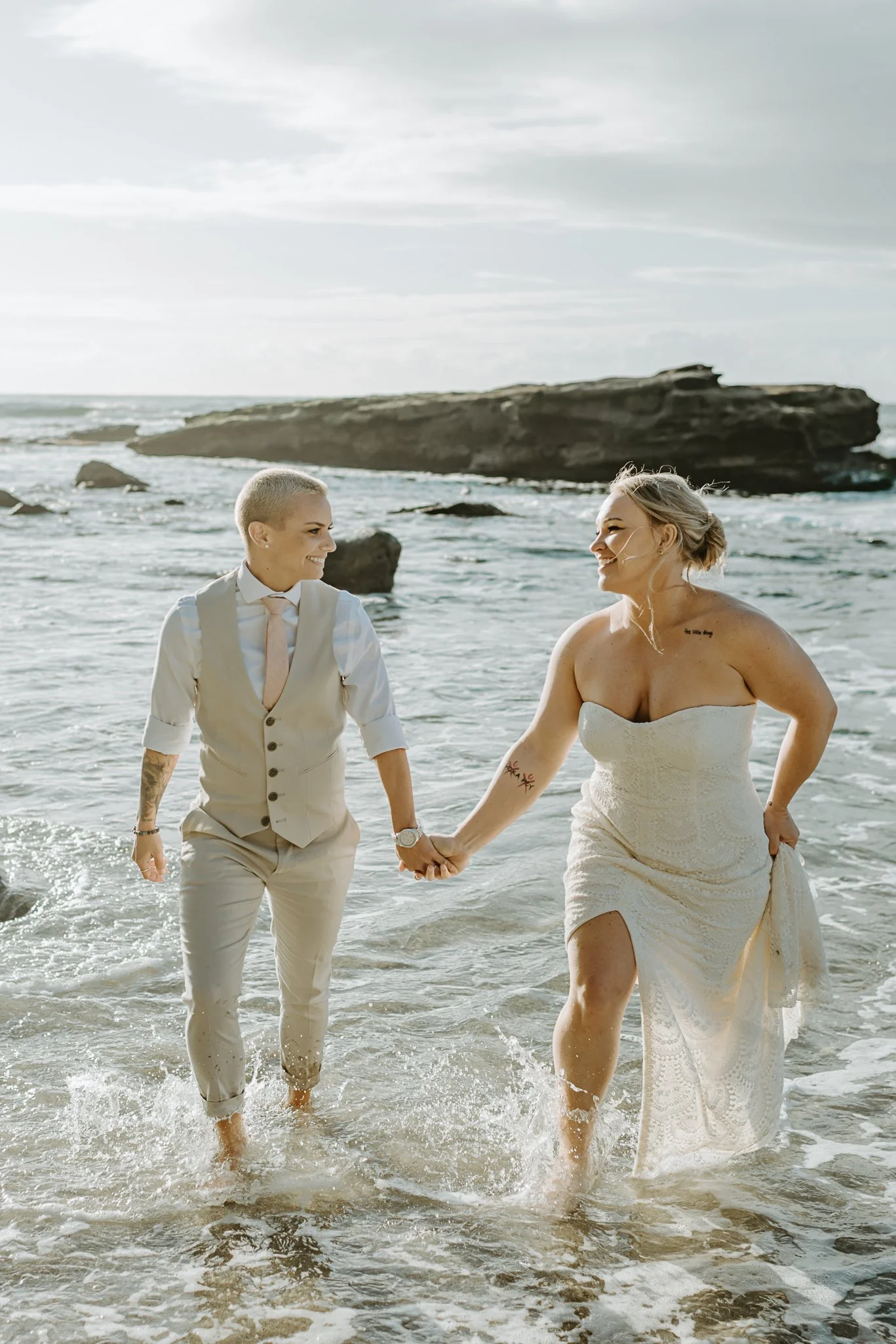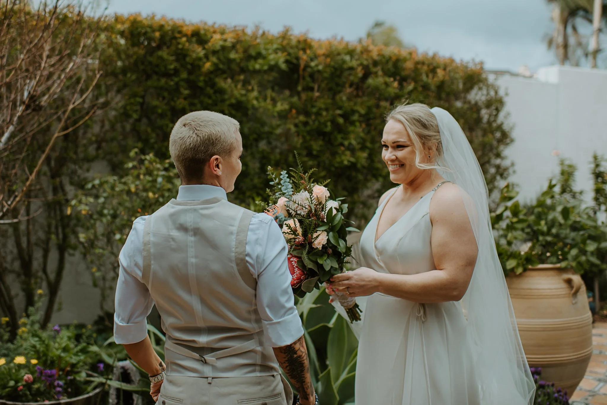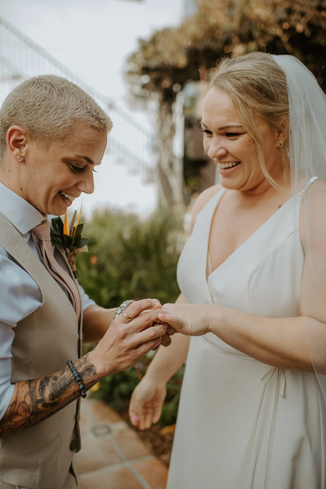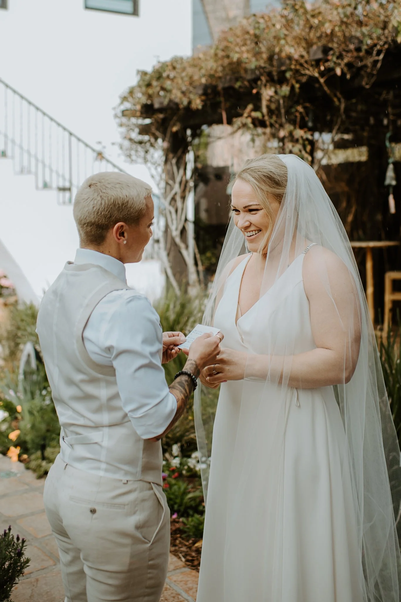 Tracy + Cassey wanted a sun filled elopement along the coast, and chose La Jolla as their destination. We started the day with their first look (one of my favorite things ever!!) and private vows at the stunning historic casita they were staying in. I loved taking advantage of the sleek and colorful architecture. We headed down to La Jolla cove and explode the beaches, and then ended the day at Sunset Cliffs. We got so so lucky with the weather, it was forecasted for rain all day, and right before their first look the clouds dissipated. We got kissed with the tiniest bit of rain during their vows, but it was honestly so dreamy.
